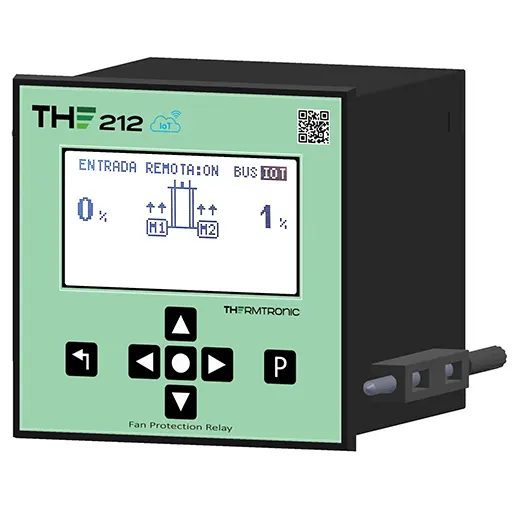 El TH212 IoT V3.0 es un controlador dedicado a la protección y supervisión del sistema de ventilación del transformador. Desarrollado para funcionar junto con el relé de temperatura IoT TH104, su función es garantizar el correcto funcionamiento de los ventiladores, evitando fallos que puedan provocar sobrecalentamiento y apagado del transformador.
