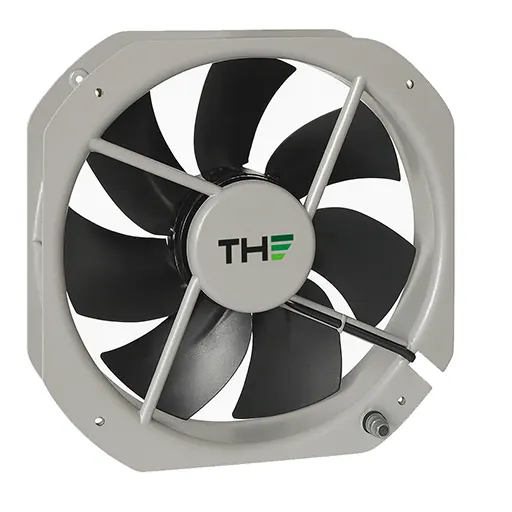 El TH620 es un ventilador de extracción axial diseñado para ofrecer un alto rendimiento en la extracción de aire caliente, en un formato compacto y fácil de instalar. Puede aplicarse en cubículos de acero o hormigón, asegurando practicidad y eficiencia en el flujo de aire. Su uso se limita al agotamiento del aire interno hacia el exterior y no está destinado a la refrigeración directa del transformador.